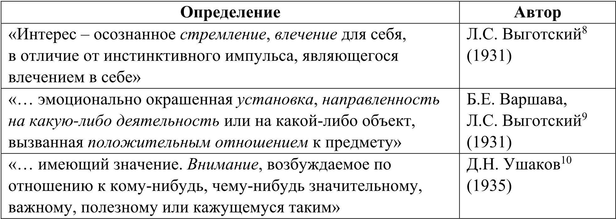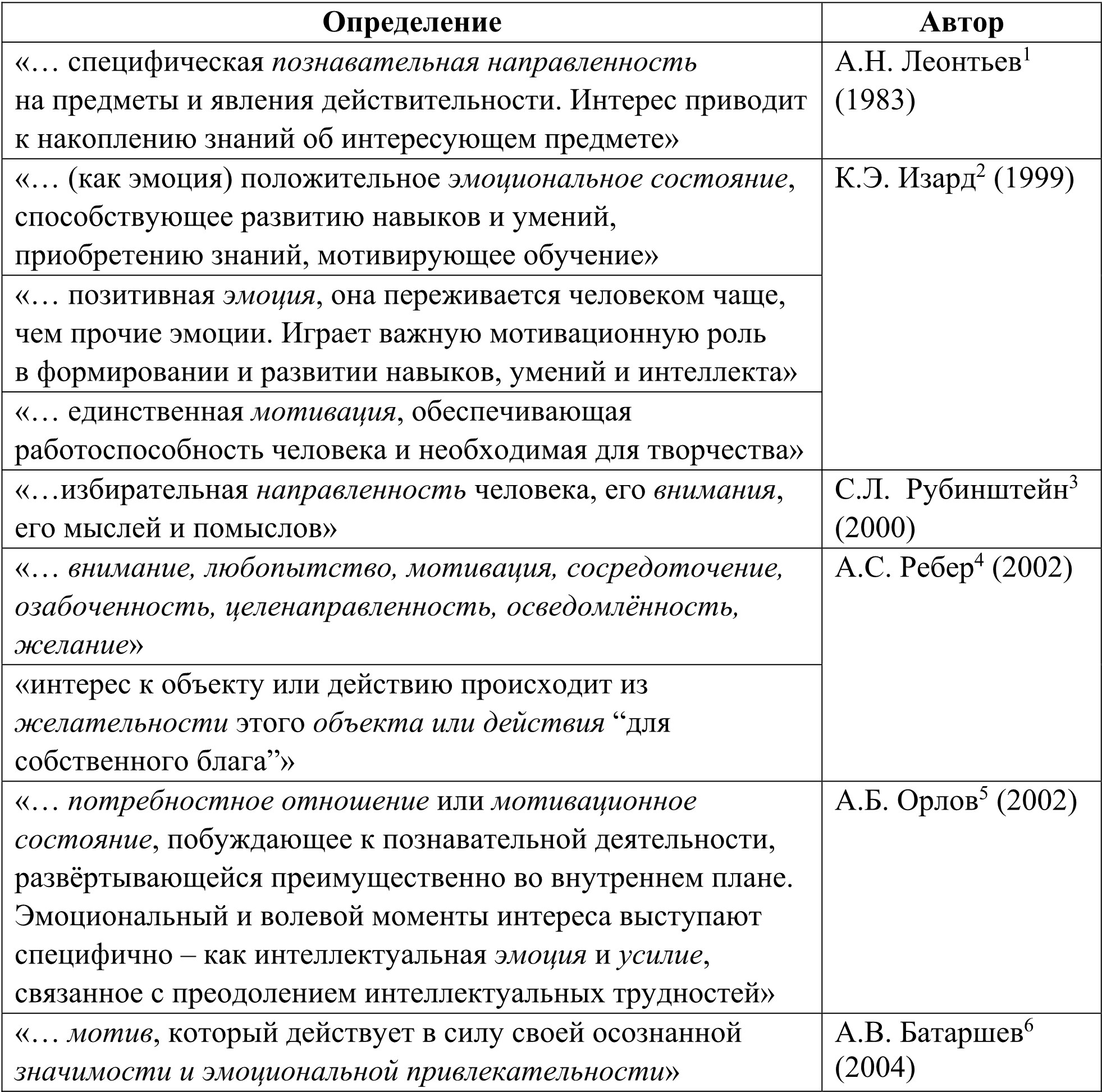 Нам импонирует определение понятия «интерес», предложенное А.В. Батаршевым: «Интерес – это мотив, который действует в силу своей осознанной значимости и эмоциональной привлекательности»63.