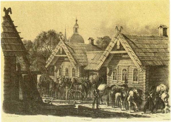 На большой дороге между Москвой и Можайском 21 сентября 1812 года. Литография И. В. Баумейстера по рис. Фабер дю Фора. 1830-е гг.