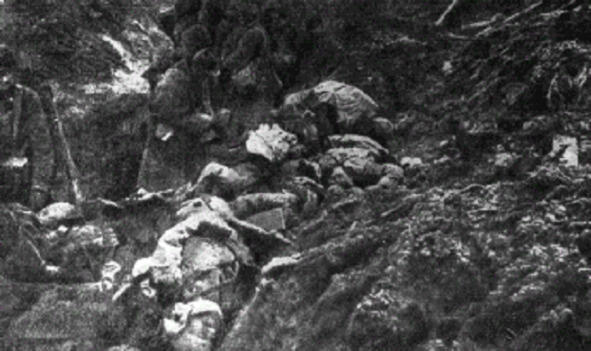 «Издержки» войны: убитые французские солдаты на передовой в районе Вердена. Фотография, 1915 г., Февраль 1916 года