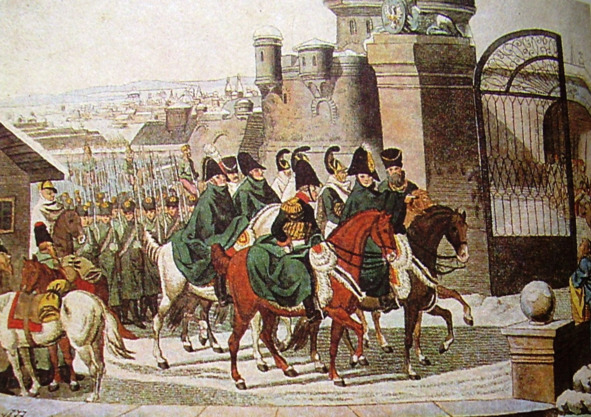 Вступление русских в Варшаву 8 февраля 1813 года. Раскраш. грав. По ориг. И. Фольца. 1-я. пол. XIX в.