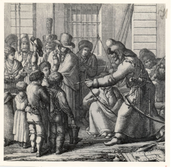 Башкиры в Берлине (Башкир. Унтер ден Линден. 11 марта 1813 г.). Худ. К. Л. Хюбейль. 1813 г. Фотокопия из Научного архива УНЦ РАН.
