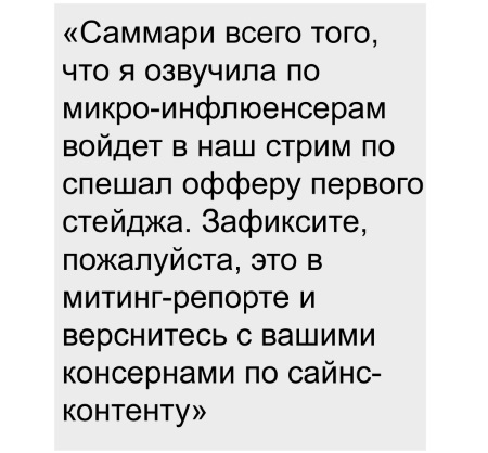 Такой корпоративный «новояз» весьма распространен сегодня в коммуникации b2b[2]. Но при этом одобряющих его использование – ненамного больше, чем порицающих: таковы результаты проведенного BFM опроса (https://hr-portal.ru/article/ot-asapa-do-fakapa-sleng-moskovskih-ofisov). С тем, что сленг упрощает общение на работе, согласились 46% респондентов, 27% ответили отрицательно. Еще у 14% нет сформировавшегося мнения на этот счет, а 13% опрошенных и вовсе сообщили: они не знают, о чем идет речь. Опрос также показал: носители офисной субкультуры пока не понимают, как относиться к языку, на котором они говорят с коллегами. «Затрудняюсь ответить» было самой распространенной реакцией на вопрос об отношении к офисному сленгу – 30% респондентов. 25% участников опроса дали положительный ответ, 21% – отрицательный. Вот несколько аргументов представителей последней группы.
