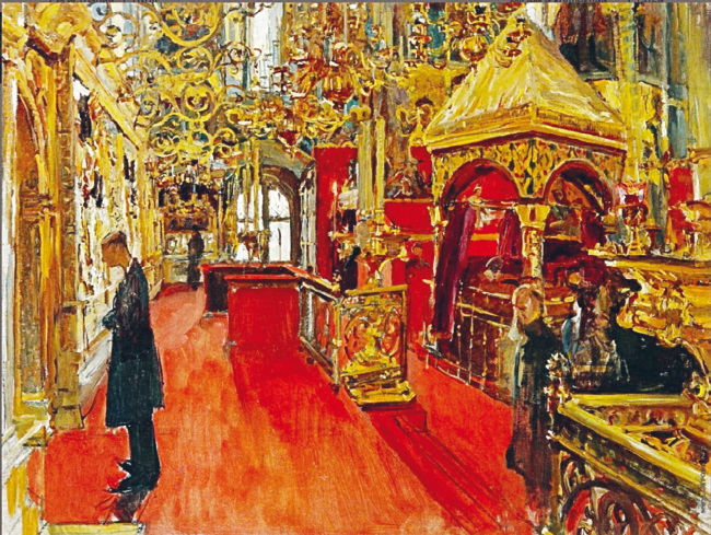 Дореволюционный интерьер Успенского собора на картине Валентина Серова. 1896.