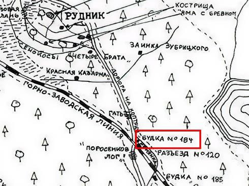 Настасья Павловна Зыкова с сыном Николаем и его женой, выехав из Коптяков в 3 часа утра, добрались до рудника примерно в 04:00 (рис. 12). В это время к руднику были доставлены тела расстрелянных и Ермаков с Вагановым курсировали от переезда № 184 до первой свёртки к руднику со стороны Коптяков. На рисунке эта свёртка (поворот) имеет № 5, т. к. счёт идёт не от Коптяков, а от Верх-Исетска (рис. 8).