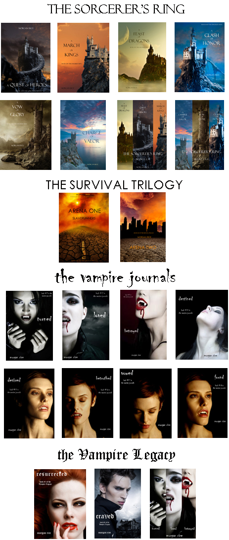 Morgan Rice schrieb die Nr. 1 Bestseller-Serie THE VAMPIRE JOURNALS, eine zehnteiligen Serie für Jugendliche, die bisher in sechs Sprachen übersetzt wurde und teilweise bereits auf Deutsch erhältlich ist.