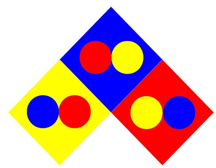 Контраст по цвету достаточно простой потому, так как его можно создать из всех чистых цветов (жёлтый, красный и синий) в их предельной насыщенности.
