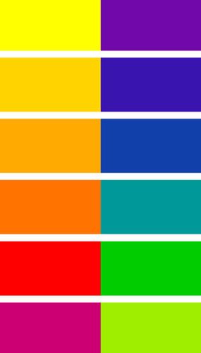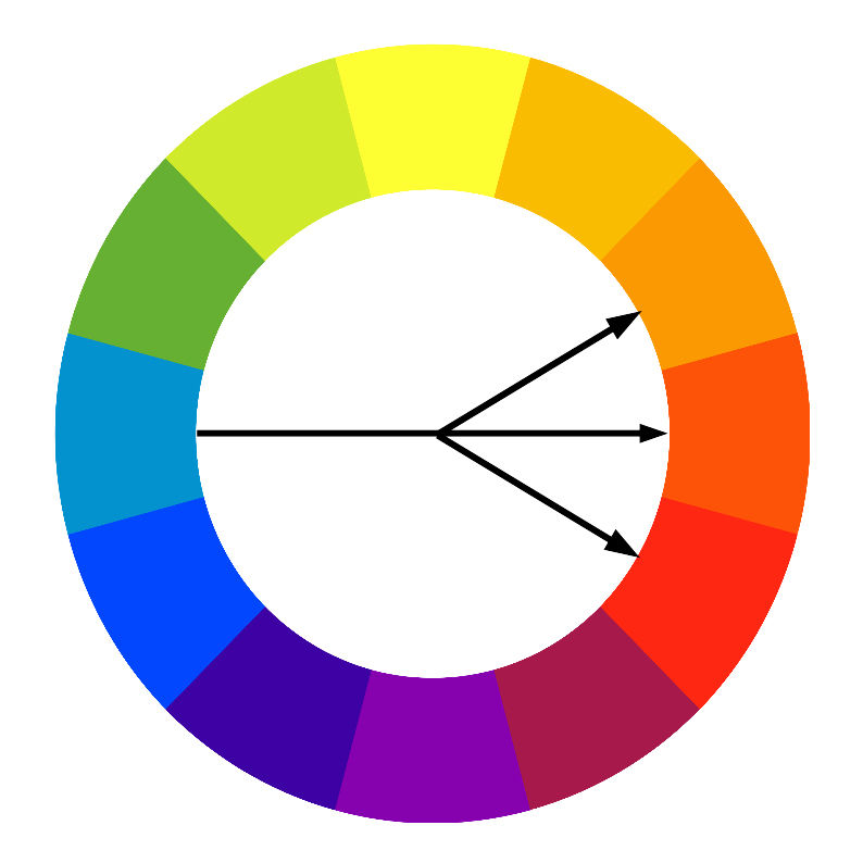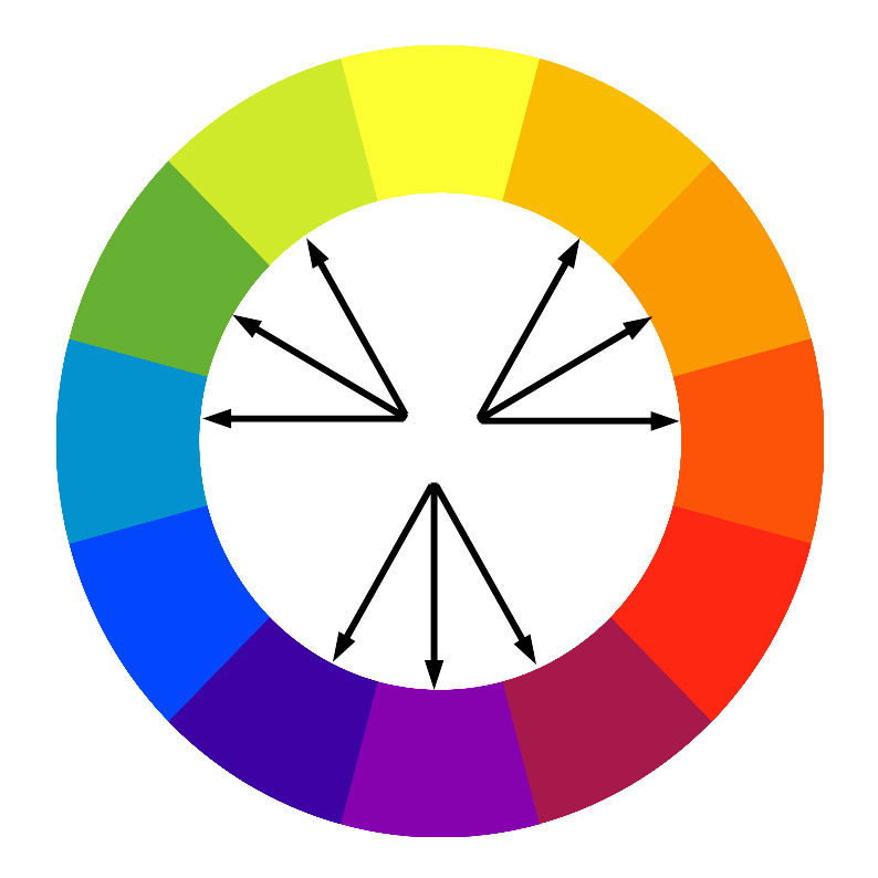 В цветовом круге эти цвета расположены строго напротив друг друга и образуют следующие сочетания: