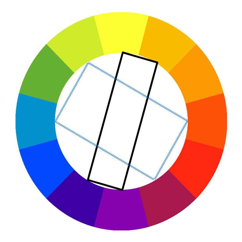 (четырёхцветная гармония) – количество цветов в такой модели достигает четырёх. Из цветового круга выбираются две пары цветов, расположенные в вершинах прямоугольника или квадрата.