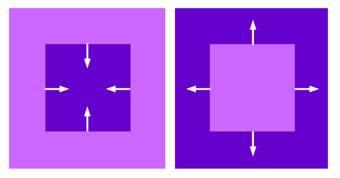 Существует одна важная закономерность: светлый объект на тёмном фоне будет выглядеть крупнее, чем аналогичный тёмный объект на светлом фоне. Белый цвет излучается и стремится во вне, в то время как чёрный поглощается и стремится внутрь.