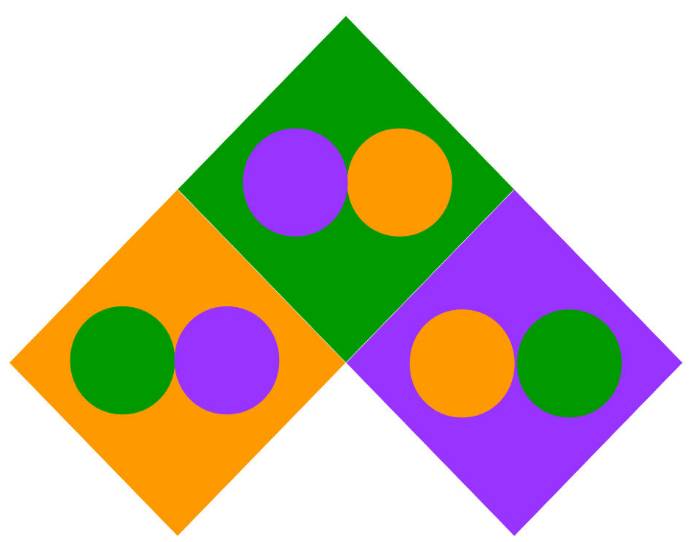 Например, контраст цветов второго порядка (оранжевый, зелёный, фиолетовый) будет гораздо слабее.