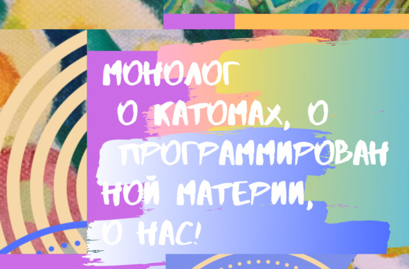 Монолог о катомах, о программированной материи, о нас!Мы сами творцы самих себя, разумеется, с божьей помощью,с помощью мыслящего разума созданы, создаемся, будем создавать.По такому же принципу Луна, Земля, все планеты созданы: проект в виде изображения, свет и движение, в итоге – видимыйреальный объект, получаем реальность, где есть свет, свет мыслящего разума,земного и небесного, -между ними синергия,в уникальных вибрациях, из струн энергии на субатомном уровне мы преобразованы, созданы, сотвореновещество.Все атомы – в унисон, синхронен их тон.Вот в чем дело:на материальном и квантово-волновом уровнях вложена информация-проект в ДНК,программа создания каждой частицынашего тела, синтеза белка, молекулывещества.Человек – разумная программированная материя, в единстве души, духа и тела слепленная, навеки сцепленная,одухотворенная,духом, волей, личностьюсвоей непрерывно творящаяся и сотворенная.Мы – материя вольная.Животворящая личность – каждый из нас.Программирование материи, клейтронныеатомы – катомы, с эффектом памяти, в твоих руках , как динамичная глина,для сотворения предметов, вещей.Все катомы – в унисон, синхронен их тон.Как на заказ, как по волшебству-чуду,я их тоже создавать буду,в квантово-электростатическихпереплетениях я их сцеплять буду для необходимыхполезных целей, веществ.Вложена в них миролюбивая программадля нашего бытия – неуничтожение нас, непричинения вреда, -каждая частица в нее погружена, в ней отражена, несет эту информациюдля мироздания, для нашего благого бытия!В нашем сознании – миролюбивая программа в единстве связанного между собойчеловечества, живогобытия!