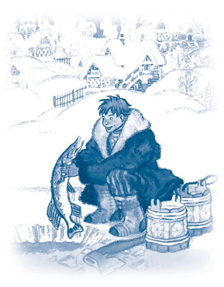 Взял ведерко, пошел к колодцу и только закинул в воду – вдруг попалась ему в ведерко большущая щука.