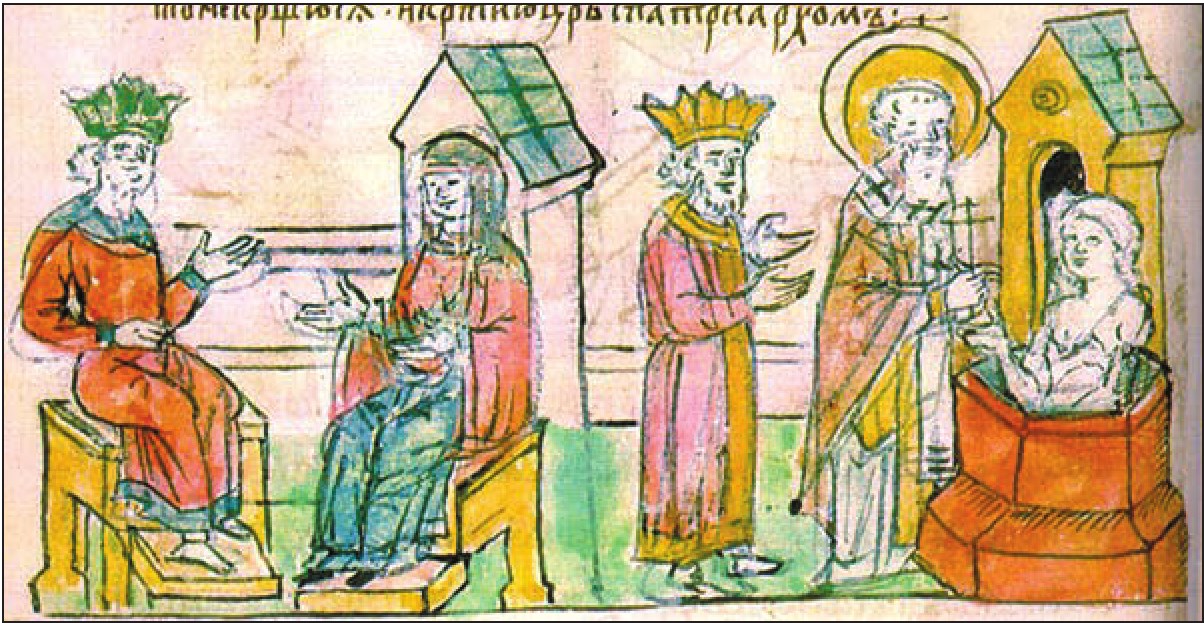 Хрещення Ольги у Царграді. Мініатюра із Радзивіллівського літопису
