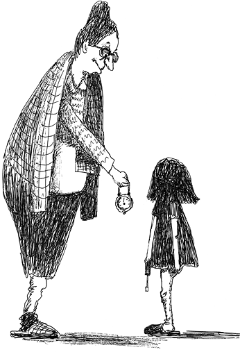 Однако факт оставался фактом: Время теперь никуда не шло, а маленькими шажками семенило на месте. Вот уже и Луна перестала заглядывать в наше окно, и один из фонарей, мигнув, погас, а проклятая стрелочка на светящемся едким зеленым светом циферблате по-прежнему упорно указывала на палку с носом и совершенно не собиралась сдвигаться. Шансы на то, что наступит «завтра», в которое придет Бабушка, стремительно падали, поскольку она-то теперь точно не узнает, когда и через сколько маленькая стрелочка доползет (если вообще доползет!) до «кочерги». От напряженного ожидания мне словно песком засы́пало глаза. Я терла их изо всех сил кулачками, но сколько бы раз, проморгавшись, ни смотрела на стену – стрелочка как будто навсегда застыла на палке с носом!