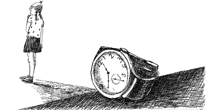 Как же я могла забыть об этом? Разглядывая теперь в неверном свете снова вышедшей Луны свои ладошки так, словно видела их впервые, я окончательно осознала, что Время сломалось и что теперь Оно так и будет бежать на месте. Стрелочка никогда больше не сдвинется с палки с носом, и что это самое «завтра» никогда не придет: те тетеньки точно прокляли нас за то, что мы с Бабушкой не взяли у них книжечки.