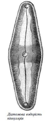 Якби ми сіли в машину часу і повернулися б на 2 600 мільйонів років назад, Діатомова водорість то океан здався б нам мертвим: ані риб, піннулярія ані медуз, над водою не літають птахи, не виповзають на узбережжя краби… Але насправді в цей час у морі йшла велика робота. Розмножувалися залізотворні бактерії (саме їм ми завдячуємо появою запасів залізних руд), у водному просторі плавали перші представники фітопланктону – крихітні рослини. Бактерії з того часу майже не змінилися, але інші мешканці підводного світу пройшли довгий шлях у своєму розвитку. Протягом мільйонів років відбувалося поступове ускладнення організмів. Одними з перших виникли синьо-зелені водорості. Серед них були і одноклітинні організми, і багатоклітинні, які нагадували тоненькі довгі нитки. Ці водорості брали участь в утворенні деяких геологічних порід (переважно вапняків). Дуже цікавими жителями прадавніх морів були діатомові водорості. Вони мали зовнішній скелет, який нагадував коробочку з кришечкою. Коли діатомеї розмножувалися, то просто ділилися навпіл, і кожна нова водорість отримувала половинку захисної оболонки. Щоправда, поділ був нерівним: одним діатомітам діставалася «коробочка», а іншим – «кришечка», трохи менша за розміром. Другу половинку потрібно було виростити самостійно. Коли життя діатомей закінчувалося, коробочки та кришечки опускалися на океанське дно. Протягом мільярдів років вони накопичувалися, тверділи і утворювали породу, яку так і називають – діатоміт. Шари діатоміту іноді бувають 100 м завтовшки. Діатоміти існують і зараз. їх можна зустріти не тільки у водоймах, але й у ґрунті і навіть на скелях.