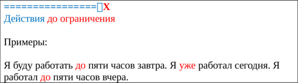 Группа характеризует действия в будущем, настоящем или прошедшем, произошедшие до другого действия или момента (к другому действию или дате) в будущем, настоящем или прошедшем времени.
