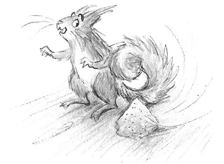 Бельчонку этот план не понравился. К счастью, на кухню, перебирая своими маленькими лапками, забежала крыса Бри, друг Талли. Заметив смятое тесто на носу Дождика, она подхватила его и сразу же съела.