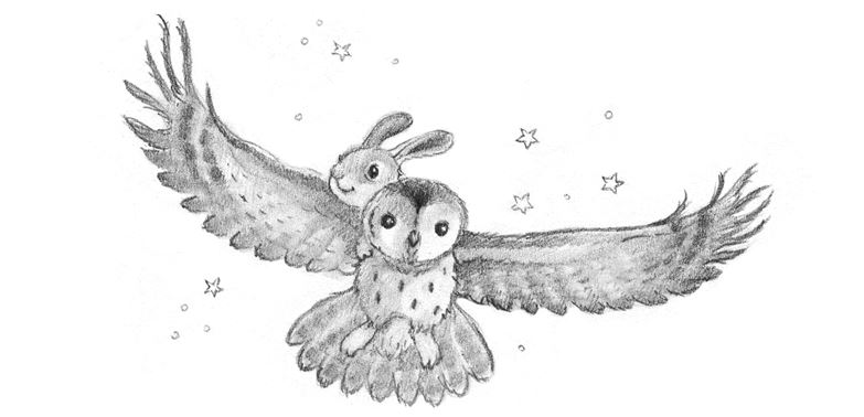 Маленький зайчонок сонно улыбнулся. Когда Совёнок поднялся в воздух и закружился над поляной, Малыш уютно зарылся в мягкие перья друга.