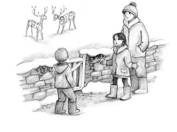 Элфи поморщился. Ему не нравилось, что сестра говорит такие вещи. Разумеется, он прекрасно понимал, что олени – всего лишь украшение. Но с тех пор как сосед Пит поставил их у себя в саду две недели назад, Элфи нравилось ими любоваться. Лёжа у себя в комнате, он смотрел сквозь занавески на их сияние и мечтал о Рождестве. Когда бы он ни проходил мимо, то всякий раз перегибался через ограду, чтобы снова взглянуть на оленей. Даже если они были сделаны из лампочек, Элфи был уверен, что выглядели они весьма дружелюбно.