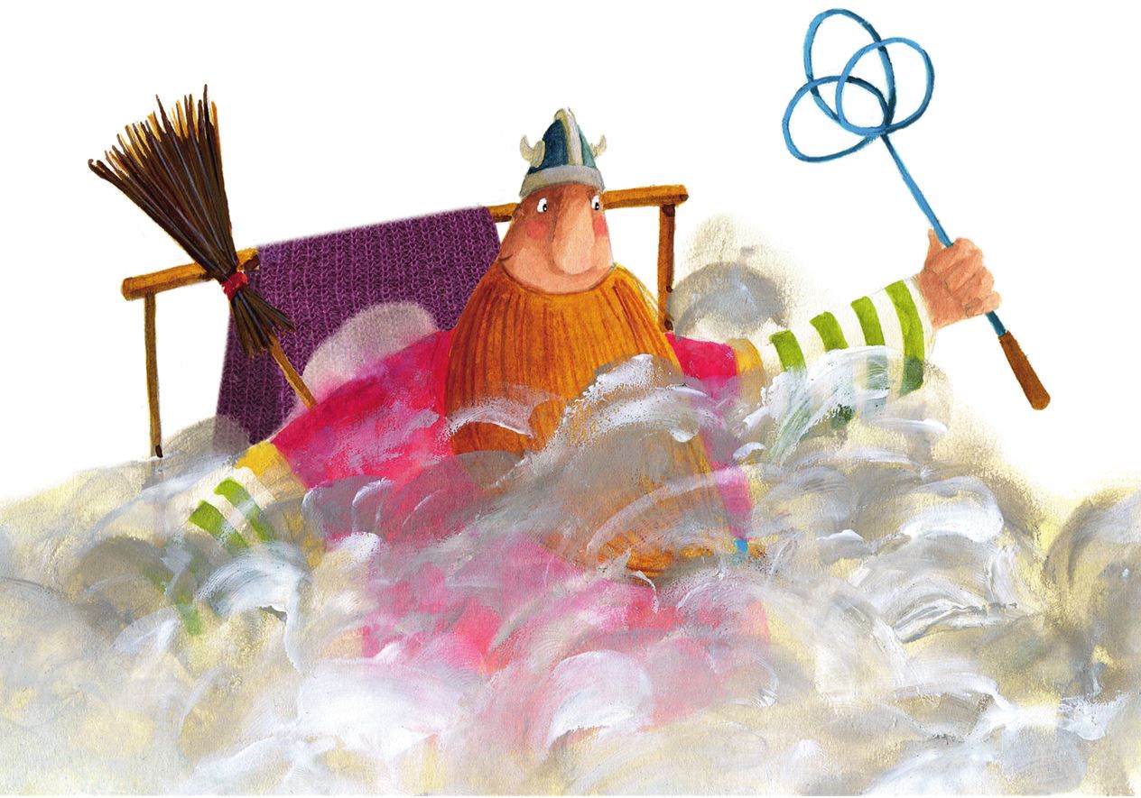 – Так это же весенний ветерок! – воскликнул викинг. – Бедняжка! Я, наверное, так громко выбивал одеяла, что ты перепугался и убежал в избушку! Прости меня, ветерок!