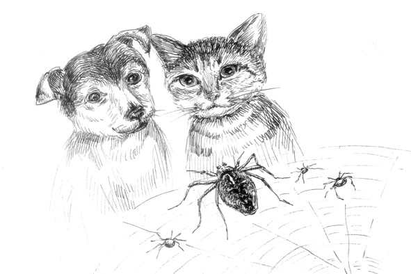 – Кто вы такие и что вам здесь надо? – спросил папа-паук, грозно сверкнув круглыми, близко посаженными черными глазками.