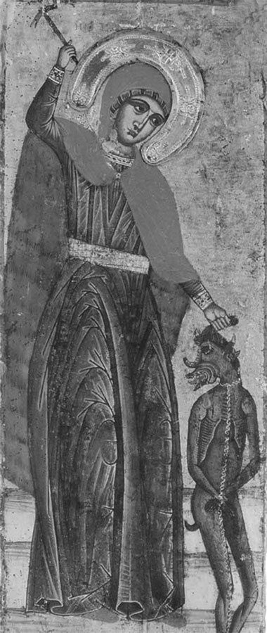 Иконы святой Марины отличаются друг от друга, но имеют запоминающуюся деталь: святая, укрощая диавола, держит его за один из рогов