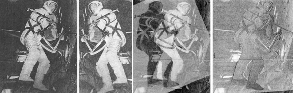 Рене: «Идеальное совпадение двух фотографий!». «Космические близнецы… Любопытно, что NASA начало заниматься фальсификацией уже в ходе программы „Близнецы“, постепенно готовя общественность к предстоящему шоу» [1]. Улика, которую обнаружил Рене, была косвенной уликой, объяснение которой можно найти без труда. Можно, например, признать факт подлога, использование фотографии с тренировке в демонстрации выхода в космос, мол, использовали, и что? Это сделано для демонстрации реального полета, в котором пленки были испорчены. Можно придумать что-нибудь другое, вполне убедительную и правдоподобную ложь о том, что «космонавт» был не в курсе фотомонтажа фотографии с тренировки. Виноваты в это оплошности редакторы, издатели книги. Рене не увидел, главных, прямых улик, которые безоговорочно доказывают невозможность пилотируемых полетов на более чем сомнительных «консервных банках» программы и «Джемини» и «Меркурий». Вместо этого, Рене обнаружил на фотографиях НАСА еще одну косвенную улику, появление антенны в носовой части капсулы после приводнения. Рене полагал, что антенна устанавливалась агентами ЦРУ после окончания фальшивого полета.