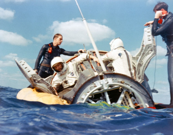 Фотография НАСА S65—61886 [2] Аргумент Рено легко объяснить. Антенна была телескопической и выдвигалась из отверстия, которое было в носовой части капсулы. Но все равно, подозрение Рене было обоснованным. Только вывод о том, что этот аппарат прилетел не из космоса, надо было сделать после рассмотрения поверхности капсулы. В нижней части конструкции отсутствовали следы аэродинамического нагрева, которые должны были быть, если бы капсула спускалась с орбиты в атмосферу.. Сохранилась яркая краска на ободе «теплового экрана», что не должно было произойти, если бы капсула прилетела в океан из космоса. Не обгорела резиновая прокладка проема люка, рядом с «тепловым экраном». Не заклинило сами двери люка от аномального термического воздействия в ее нижней части. На эти факты Рене не обратил внимания, хотя вывод сделал, в основном, правильный: «Единственное логичное заключение, которое приходит на ум, – капсула вообще не входила в атмосферу из космоса, а была выброшена с парашютом из транспортного самолета ЦРУ». [1] ЦРУ не участвовал в этой операции. В те годы и позднее существовал законодательный запрет на деятельность этой разведывательной организации внутри США. Что впрочем не мешало агентам ЦРУ его постоянно нарушать. Но система федерального законодательства Америке блокировала финансирование такой дорогостоящей операции по дезинформации, которая проводилась на территории США.