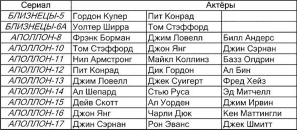 Очень неожиданное решение поместить в список актеров Алана Шепарда. Если Рене поместил в список актеров «космонавтов» миссии «Джемини-6А», то автоматически необходимо было поместить в этот список актеров «космонавтов» из миссии «Джемини-7». Эти актеры фактически участвовали в одном шоу.