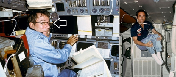 Обращает на себя внимание состояние зрения Янга. Он носит очки. Только американцы набирали в космонавты людей с плохим зрением и серьезными проблемами зрения.