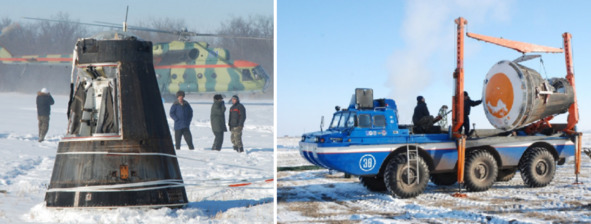 К сожалению, отсутствует изображение теплового экрана «Янтарь-2К». Люди, побывавшие в музее США, где находится капсула Гленна, сняли на видеокамеру внешний вид теплового экрана в анфас, и сбоку.