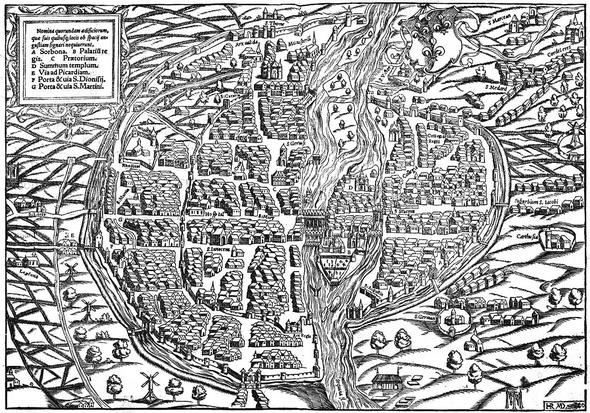 Рис. 1. 40. a. Карта Лондона, AD 1300, b. Карта Парижа, AD 1550.