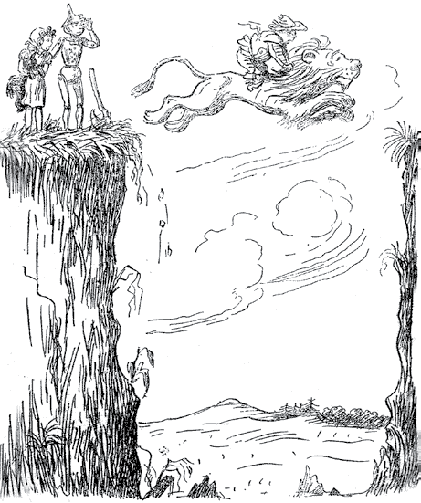 Лев плыл, пыхтя от напряжения, а Железный Дровосек крепко держался за кончик его хвоста. Трудна была работа – тащить плот, но все же Лев медленно подвигался к другому берегу. Скоро Элли убедилась, что шест достает дно, и начала помогать Льву. После больших усилий совершенно измученные путники наконец достигли берега – далеко-далеко от того места, где начали переправу.