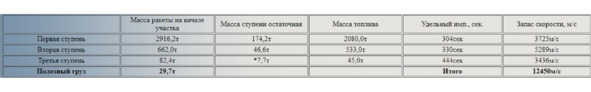Ситуация со второй водородной ступенью S-II была немногим лучше. Напомню, что на ней установлено пять аналогичных ЖРД J-2. Вот что написано в (2): «1966 May 25 – First full-scale Apollo Saturn V launch vehicle rolled out… Meanwhile, schedule for Saturn V threatened by continued problems in development of S-II stage (inability to get sustained 350-second burns without instrumentation failures, shutoffs, minor explosions)». Перевод по-русски: «25.05.1966 г. Состоялся первый вывоз полномасштабной ракеты Сатурн-5 на стартовую позицию… Тем не менее, сроки готовности были под угрозой из-за непрекращающихся проблем со ступенью S-II (неспособность выдать стабильный импульс длительностью 350 секунд без отказов оборудования, отключений двигателей и даже микровзрывов)». Проще говоря, в тот день 25 мая 1966 года ступень во время теста загорелась в двух местах синим пламенем. А через три дня просто взорвалась, ранив пять рабочих (!) и частично разрушив стенд (!!) согласно (5). Так что ни о каких водородных вторых ступенях «Сатурн-5» всего за год до первого пуска (1967 г.) и речи быть не могло. Это значит, что и S-II и S-IVB к полетам не были готовы. С третьей ступенью ситуацию можно было еще исправить: была другая ступень – S-IV без индекса Б. Она была в два раза легче: масса брутто 50,5 тонн; сухой вес 5,2 тонны. На ней стояли шесть мелких ЖРД RL-10A-3. В отличие от мифических S-IVB и J-2, это железо летало на блоках «Центавр» с начала 60 гг. Тяга 66,7 кН; УИ=444 сек (образца 1966 г) (2). Как видите, в пожарном порядке замена S-IVB была. Правда, ценой замены одного J-2 на шесть RL-10. А вот с S-II ничего не поделаешь – заменить пять J-2 на тридцать RL-10 просто не реально! Зато реально заменить водород на керосин, поставить пять стотонных Н-1 с высотными соплами. Это все, что можно сделать в данной ситуации. Можно еще заменить керосин на гептил или аэрозин. Это немного улучшит показатели. Гипотеза весового расклада «керосиновой» версии «Сатурн-5». По некоторым данным, весовая сводка «керосиновой» версии РН «Сатурн-5» для полетов к Луне могла выглядеть следующим образом: