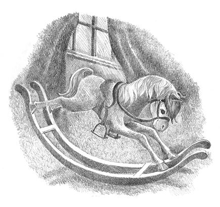 Конь-качалка задумчиво раскачивался взад и вперёд, у него были большие добрые карие глаза, а его грива переливалась в лунном свете. Люси почти слышала его тихое ржание. Он и правда был красавцем. Растрёпа смотрел на девочку с её кровати, и Люси точно знала, что если бы он мог, то обязательно завилял бы хвостом. Люси очень любила их обоих.