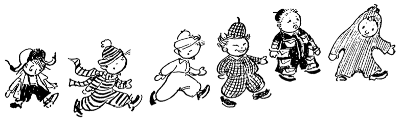 Сиропчик нарядился в клетчатый костюм. Он всегда ходил в клетчатых костюмах. И брюки у него были клетчатые, и пиджак клетчатый, и кепка клетчатая. Увидев его издали, коротышки всегда говорили: «Глядите, глядите, вон идёт шахматная доска». Авоська нарядился в лыжный костюм, который считал очень удобным для путешествия. Небоська надел полосатую фуфайку, полосатые гетры, а шею обмотал полосатым шарфом. В этом костюме он был весь полосатый, и издали казалось, что это вовсе не Небоська, а обыкновенный полосатый матрац. В общем, все оделись кто во что мог, только Растеряйка, у которого была привычка бросать свои вещи куда попало, никак не мог отыскать свою куртку. Кепку свою он тоже куда-то сунул и, сколько ни искал, нигде не мог найти. В конце концов он нашёл под кроватью свою зимнюю шапку с ушами.