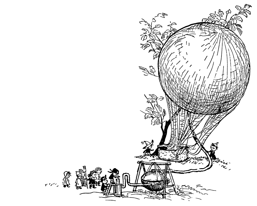 – Ещё не полетел. Видишь, он к корзине привязан. Разве он сможет поднять корзину, да ещё с коротышками?