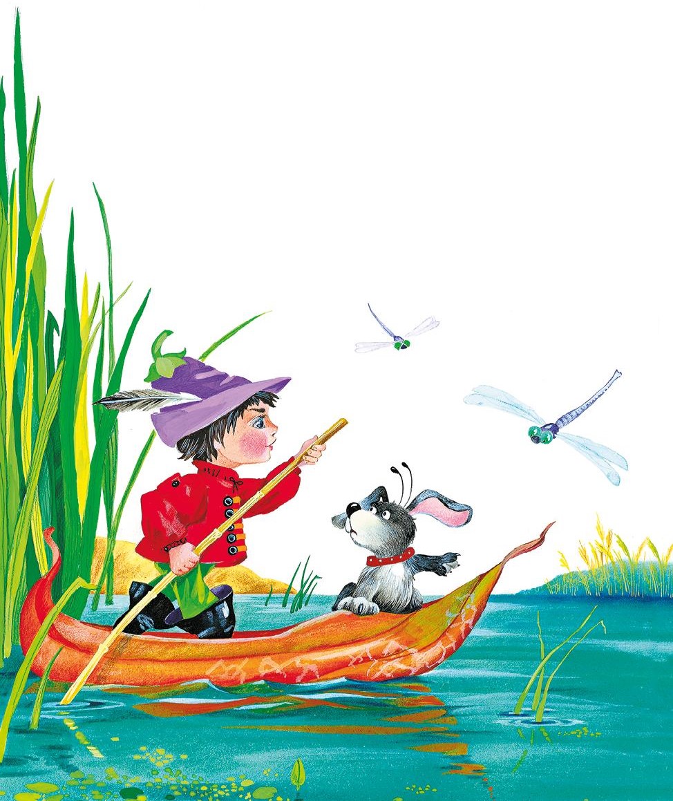 – Слушай, Гунька, – сказал однажды Незнайка. – Давай рискнём и сплаваем не вверх по реке, где огурцовые огороды, а вниз по течению. Просто не будем поднимать парус или грести вёслами, и сама река нас понесёт куда нужно.