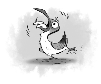 Вдруг Мистер Пёс увидел, как молодой баклан затряс головой и запрыгал по берегу. Он заметил, что у него в клюве что-то есть – и он не может это выплюнуть.
