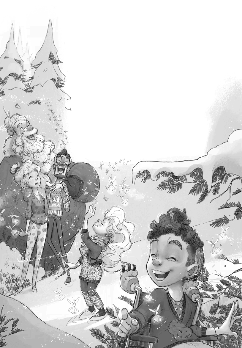 – Ах, да вот же они, – прошептал Санта, осторожно пробираясь между заснеженными деревьями и ведя Боба, Бренду, Памелу, Уильяма и Снегозавра к мерцающим огонькам. – Вот они, желания!