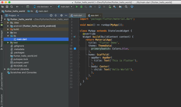 Весь общий для Android и iOS код находится в папке lib. Сейчас у нас там только файл main. dart