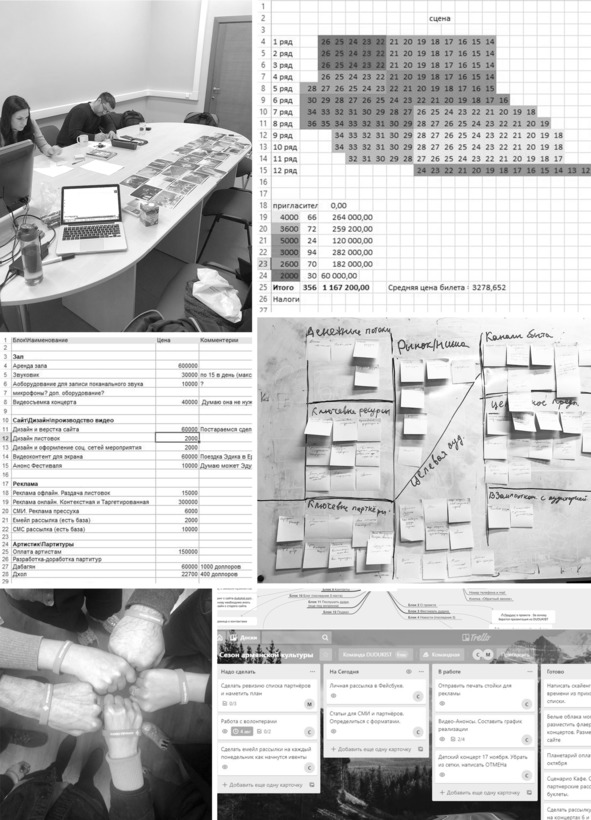 Каждый должен выполнять те задачи, в которых он хорошо разбирается или хочет разобраться. Например, в нашем проекте Марина всегда занималась коммуникацией с музыкантами и концертной программой. Все задачи прописываются, и для каждой из них назначается ответственный, а вместе с ним и дедлайн, который всегда стимулирует исполнителя быть в тонусе.