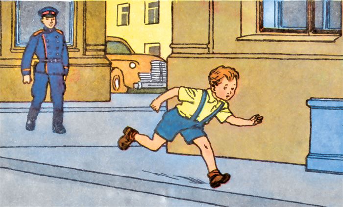 – Эх ты, трусишка! Увидел милиционера и испугался. Может быть, милиционер совсем в другое место идёт.