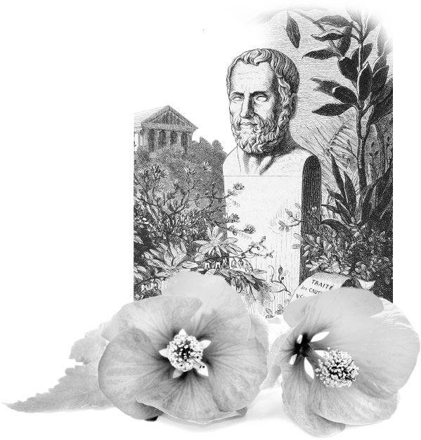 Теофраст родился на греческом острове Лесбос около 372 г. до н. э. Он учился в Афинах у Платона, затем у Аристотеля, а после смерти учителя возглавил афинскую школу Аристотеля – Ликей. В многотомном труде «Естественная история растений» Теофраст задался целью классифицировать растения по типам – классификации животных ранее создал Аристотель. Теофраст выделял деревья, кустарники, многолетники и травы. Заключительная, девятая книга «Истории» рассматривает лечебные свойства растений и прочие способы их применения. Работа Теофраста оказала огромное влияние на более поздних исследователей лекарственных трав.