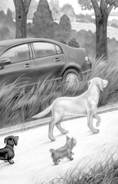 – Вы оба сегодня жутко мрачные. Куда подевалась моя болтливая неунывающая Гиз? И наш бесстрашный неутомимый вожак Макс? – Выбежав на дорогу, такс посмотрел на своих друзей и пролаял: – Больше никакой скулёжки, ребята! Двинемся дальше!