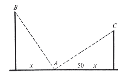 На обоих берегах реки растет по пальме, одна против другой. Высота одной – 30 локтей, другой – 20 локтей; расстояние между их основаниями – 50 локтей. На верхушке каждой пальмы сидит птица. Внезапно обе птицы заметили рыбу, выплывшую к поверхности воды между пальмами; они кинулись к ней разом и достигли ее одновременно.