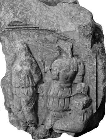 Один из изображенных на рельефе воинов носит панцирь торакс. Археологический музей Сиде. Фото автора