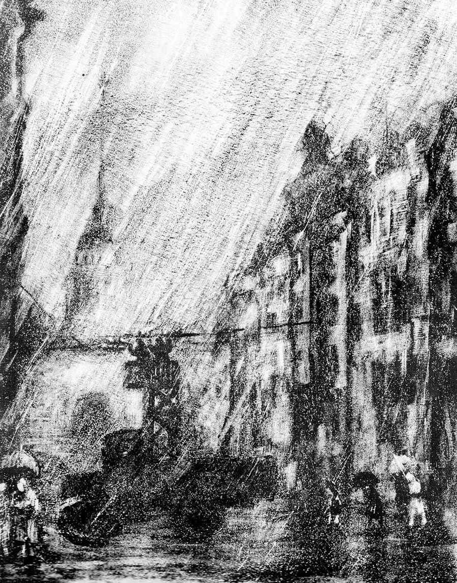 «…Город начинал, только начинал оживать. Нас преследовало смутное ощущение, что он, подурневший, оглушенный, полуослепший, еще и отравлен. Чем? Трупами, что недавно валялись на улицах, на площадках лестниц? Горем?… Ни одного человека не встретили мы по пути. Словно шли по мертвому городу. Светло как днем, а пустынно, как не бывало в этих местах даже глубокой ночью. И впечатление мертвенности усиливали слепые окна и забитые витрины магазинов… Родной город принимал своих блудных поневоле сынов, как и подобает существу больному, оглушенному, ему было не до нас…
