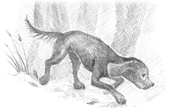 Он очень устал, поэтому взять след было сложнее, чем обычно, но всё-таки щенок его нашёл и поспешил прочь из леса.
